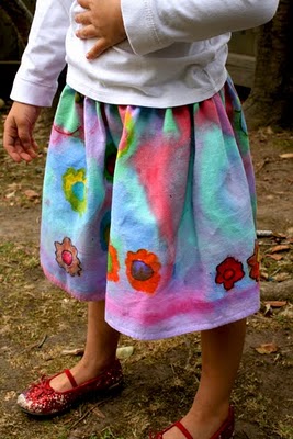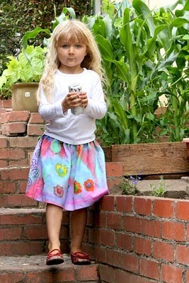 Na foto abaixo, com o tecido já pronto, foi criado uma saia com elásticos na cintura, e uma simples costura para juntar os lados!! Veja que criativo: