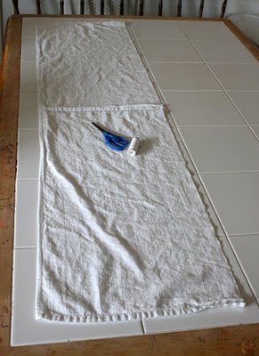 Pegue 2 panos de prato (que ainda não foram pintados) e costure as duas partes juntas em uma longa faixa.